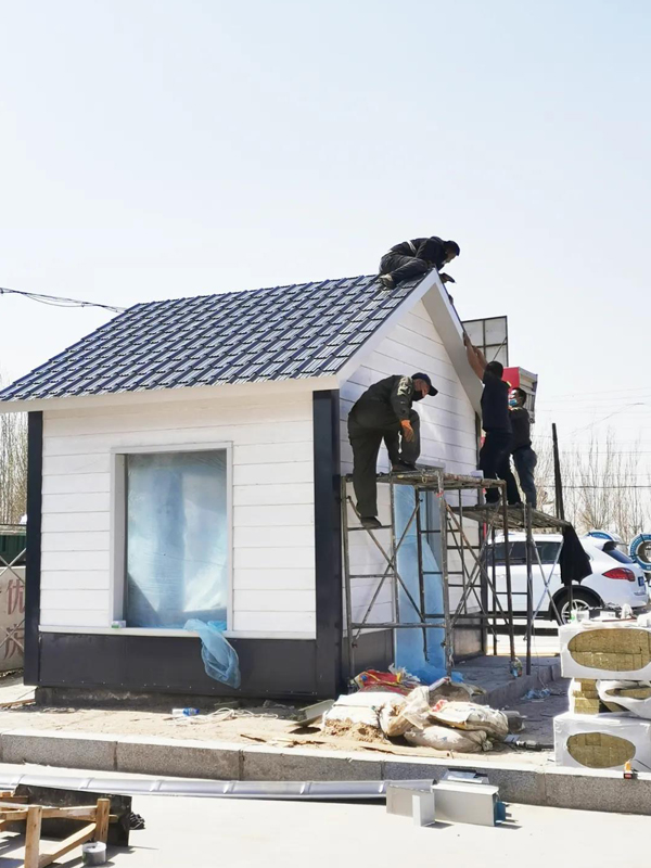 院里的小房子屋面正在安裝琉璃瓦