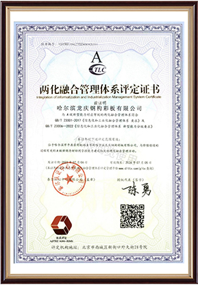 目前擁有國家鋼結構制造一級資質、鋼結構**承包一級資質、施工總承包二級資質、IS09001質量體系認證、國家信用等級AAA級企業、取得兩化融合管理體系認證、被評為黑龍江省裝配式示范基地、高新技術企業、專精特新企業、創新型中小企業等榮譽稱號。**通過安全、質量、環境管理體系認證,擁有三十多項知識產權專利。
